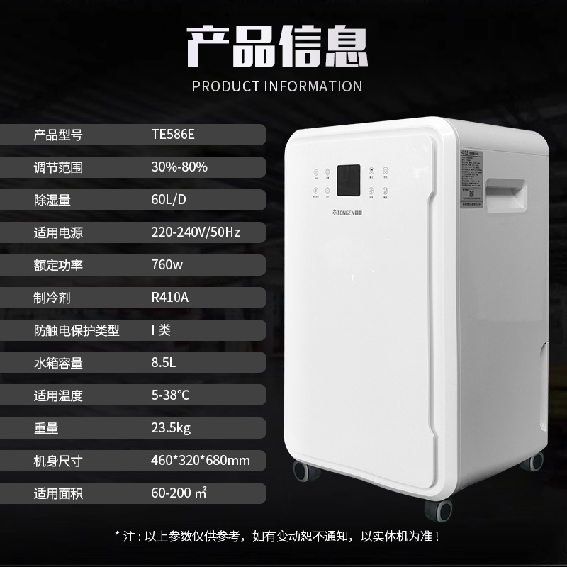 1、可連接排水管實現連續排水功能 2、大型水箱8.5L容量,水滿自動停機 3、特有濕度智能調節功能 4、濕度自動控制,設定濕度30~80%RH可調 5、活性炭和可清洗的空氣過濾器 6、低溫適用,高效自動化霜系統 7、高低2擋風速可調,滿足不同需求 8、1-24H定時 9、相序保護功能 10、壓縮機熱保功能 11、斷電記憶功能 12、環保冷媒,高效節能 13、一鍵干衣除濕功能 14、具備一鍵童鎖功能,可有效避免兒童因好奇而誤操作 15、360度萬向輪設計,移動更加方便、快捷 16、阻燃防火盒國家標準V5級 17、配有排水泵,在8米范圍內自動排水